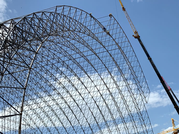 (2)网架加工前应对现场尺寸进行复测,确认无误后方可进行加工、安装;网架制作、运输、安装应遵守《空间网格结构技术规程》JGJ7-2010、《钢网架乐山螺栓球节点》JG/T 10-2009、《钢网架乐山螺栓球节点用高强度螺栓》 GB/T 16939-2016、《乐山钢结构乐山工程乐山施工规范》 GB50755-2012、《乐山钢结构乐山工程乐山施工质量验收标准》 GB50205-2020。